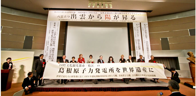 また、島根県は1966年、県庁所在地松江市の10キロ圏内に原子力発電所を誘致、日本最大を含む3基共、運転できない状態が続いています。社会の構造的疲弊が、「財政ひっ迫」「中海干拓事業中止と大橋川開削」「竹島の日制定」「公共施設の陳腐化、利用者の減少」等を生み、文化・政治・経済の活力が低下、急激な人口減少を招き、閉そく感が漂っています。