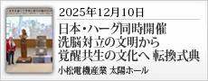 座談会<パネラー> 平田 厚志 氏 (龍谷大学 名誉教授) 李 洙任 氏 (龍谷大学 教授) 田中 勝邦 氏 (広島オーストリア協会 運営委員) 吉田 正博 氏 (永続的成長企業ネットワーク 代表理事) 李 惠筠 氏 (安重根紀念館 局長) 尹 熙竣 氏 (小松コリア 社長) <コーディネーター> 小松 昭夫 氏 (小松電機産業 人間自然科学研究所 代表取締役) |