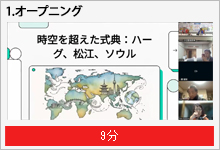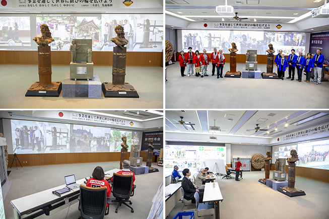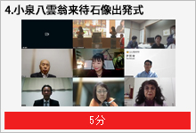 これに先立ち、日本・島根県松江市 小松電機産業「太陽ホール」において、小泉八雲来待石像 出発式を開催し、韓国、台湾、タイをライブ配信で結び世界同時開催しました。