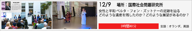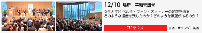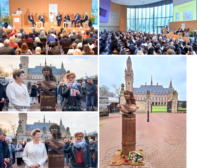 1913年、鉄鋼・金融・図書館の父アンドリュー・カーネギーの寄付により建設されたオランダ・ハーグ世界平和宮(現:国際司法裁判所)玄関に 、アルフレッド・ノーベルの命日12月10日、若き日のベルタ・フォン・ズットナー像が建立されました。