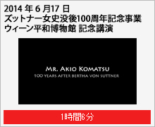 アンドリュー・カーネギーの寄付により建設された『平和宮』にベルタ・フォン・ズットナー像が建立されたシンポジウムの映像を背景に、『洗脳対立の文明から覚醒共生の文化へ』の転換を目指し、松江から世界へ平和の祈りが発信されました。